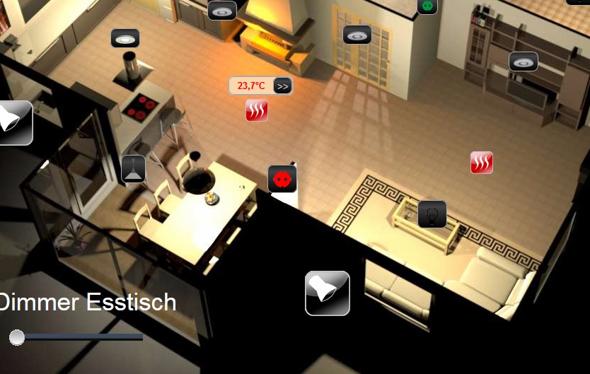 Jetzt schaltet die Fußbodenheizung im Esszimmer und Wohnzimmer gleichzeitig. Toll!