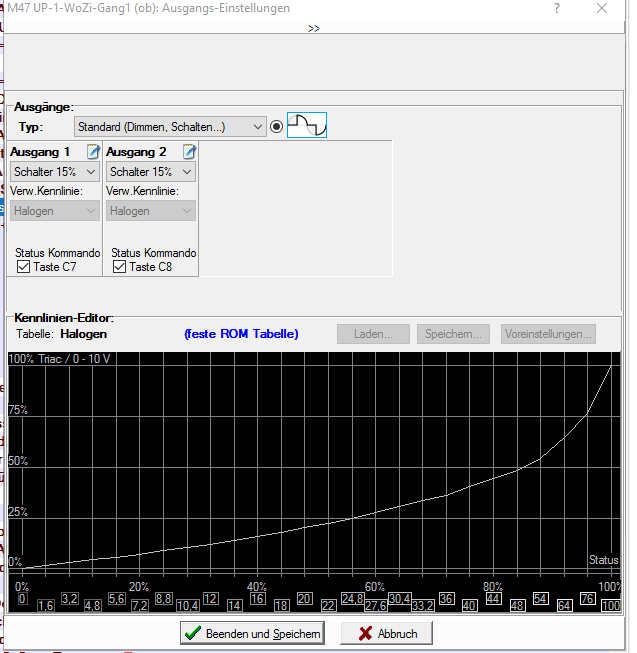 Ich habe das Modul als "Schalter bei 15%" und die OD's haben eine feste ROM Table. Da kann man nix ändern.