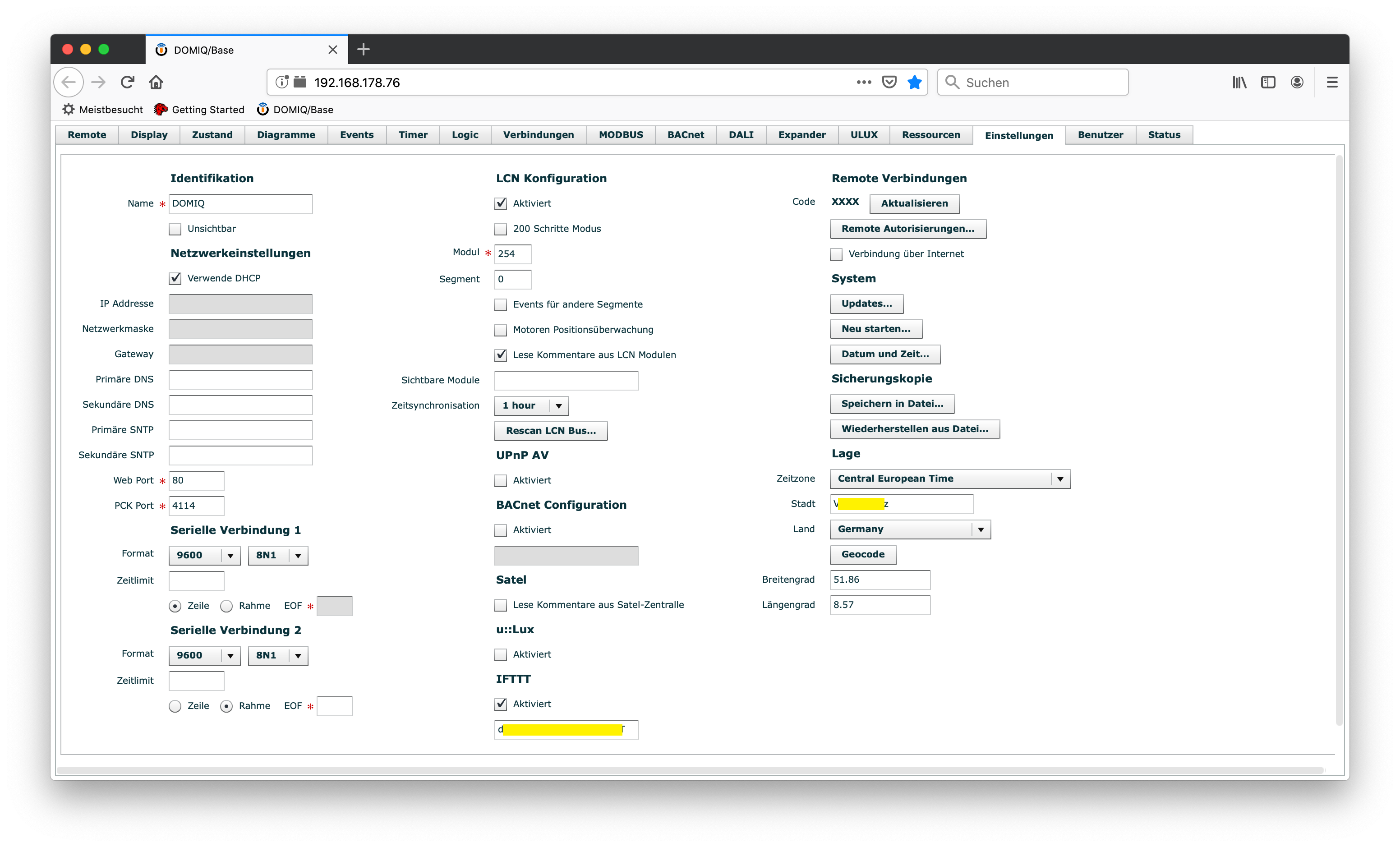 -- Ist die IP-Adresse des DOMIQ immr gleich? Du hast beim DOMIQ DHCP eingestellt.