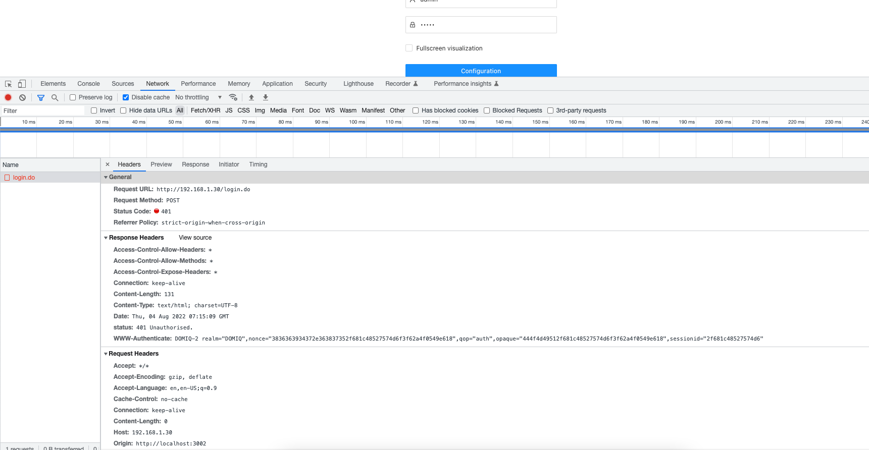 thank you for the screenshot. But if I call the camera website there is no section like "login.do" or any other section where to find the the mentioned "www.auth string" in the developer console.