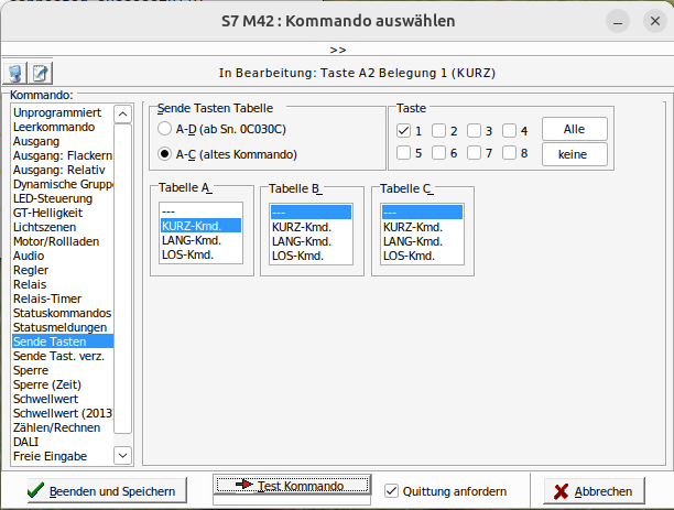 Stefbert hat geschrieben: + Ich habe mir damit beholfen, dass die Taste A1 (Kurz) dann die Taste C8 (kurz) triggert, was ich dann auch in LCN-Pro sehe.