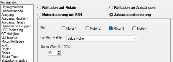 Beim UMF ist in der LCN-Pro 6.9.5 das Kommando „Jalousiepositionierung“ verfügbar.